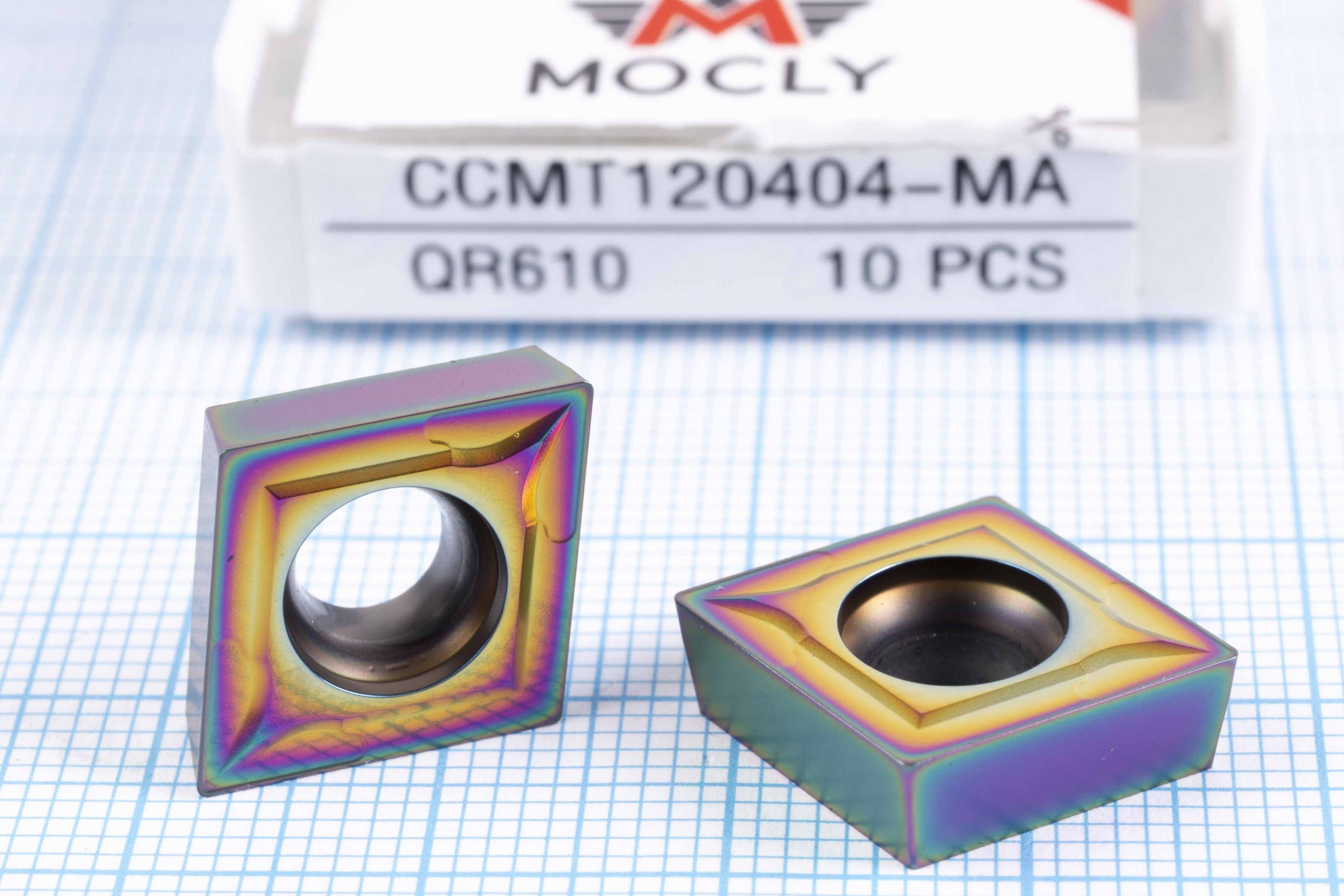 Сплав QR610 – це високопродуктивний твердосплав, який використовується для виготовлення токарних пластин (вставок). Він містить в своєму складі карбід титану (TiC), карбід вольфраму (WC) та кобальт (Co), що забезпечує високу міцність та зносостійкість сплаву.