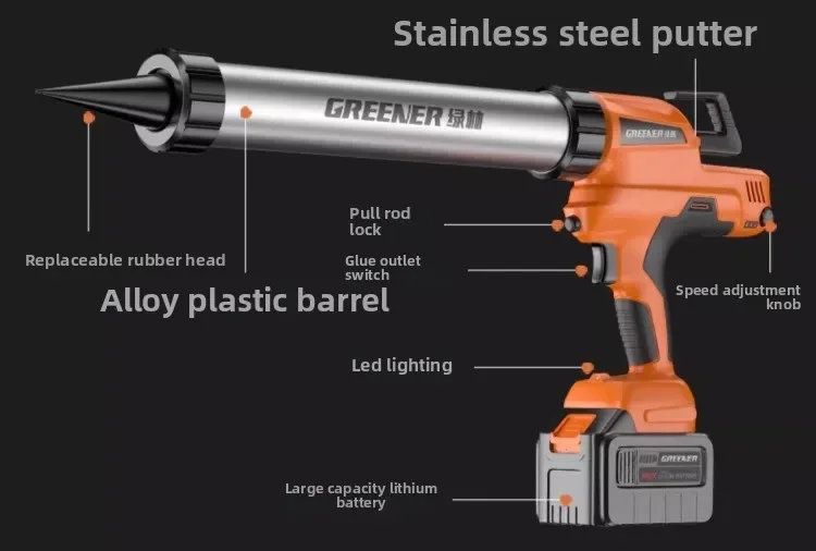 Акумуляторний пістолет GREENER 8504 – це професійний інструмент для точного та рівномірного нанесення герметиків, силіконів, акрилових та поліуретанових складів. Потужний двигун, 6-рівневе регулювання подачі та комплект із двома Li-ion акумуляторами 21V забезпечують стабільну роботу навіть під високим навантаженням.