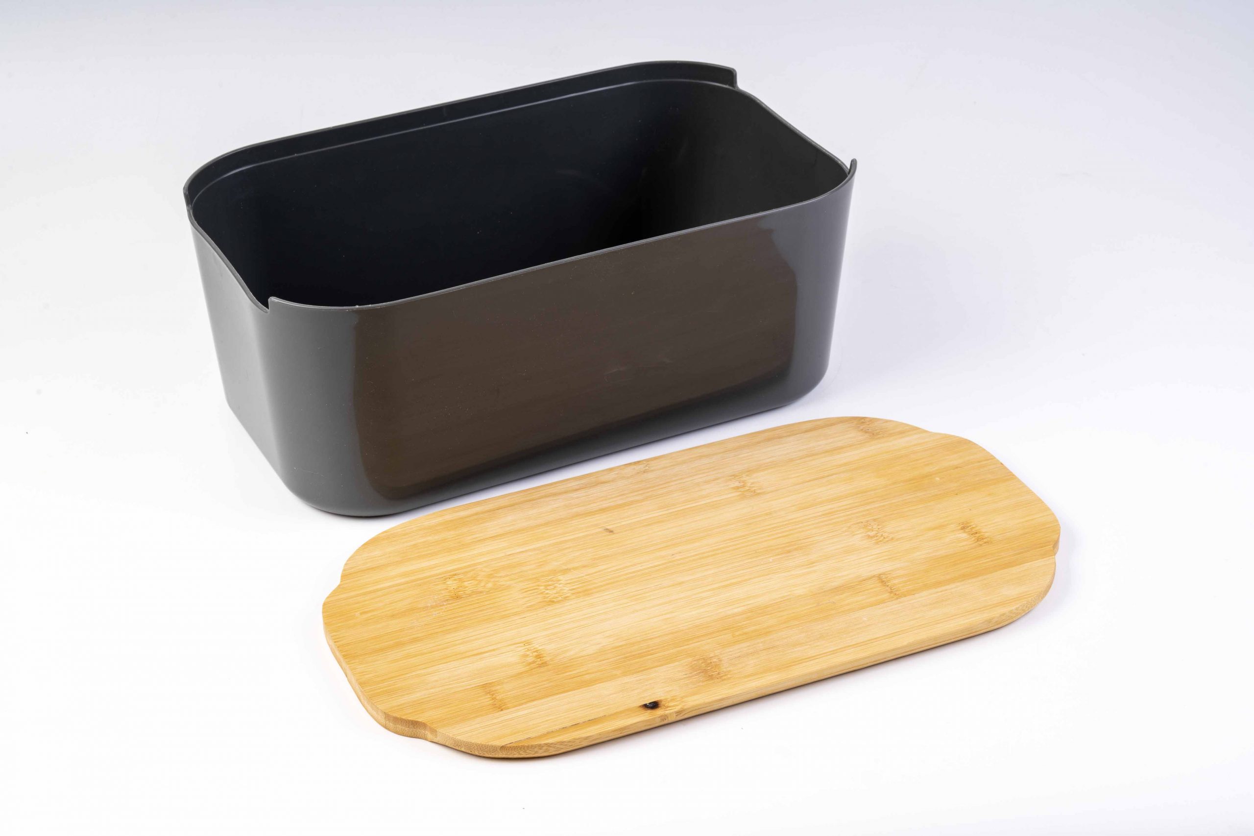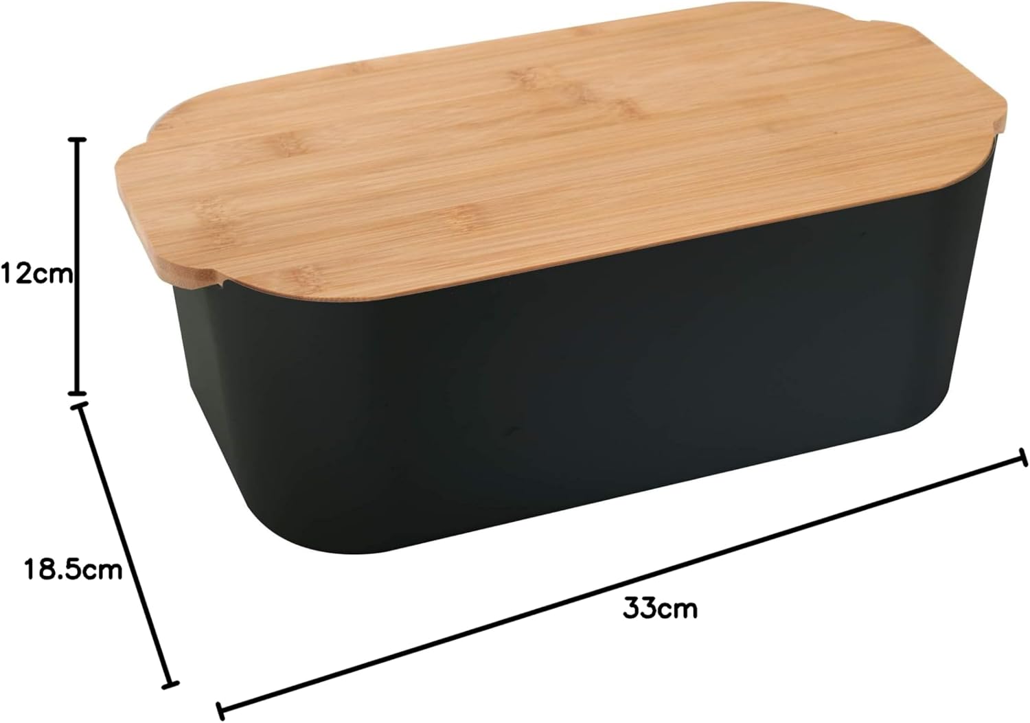 Практична й стильна хлібниця для зберігання хліба, булочок, пирогів та інших виробів. Завдяки лаконічному дизайну з поєднанням чорного корпусу та натурального бамбука, вона гармонійно впишеться у будь-яку кухню — від сучасної до класичної.
