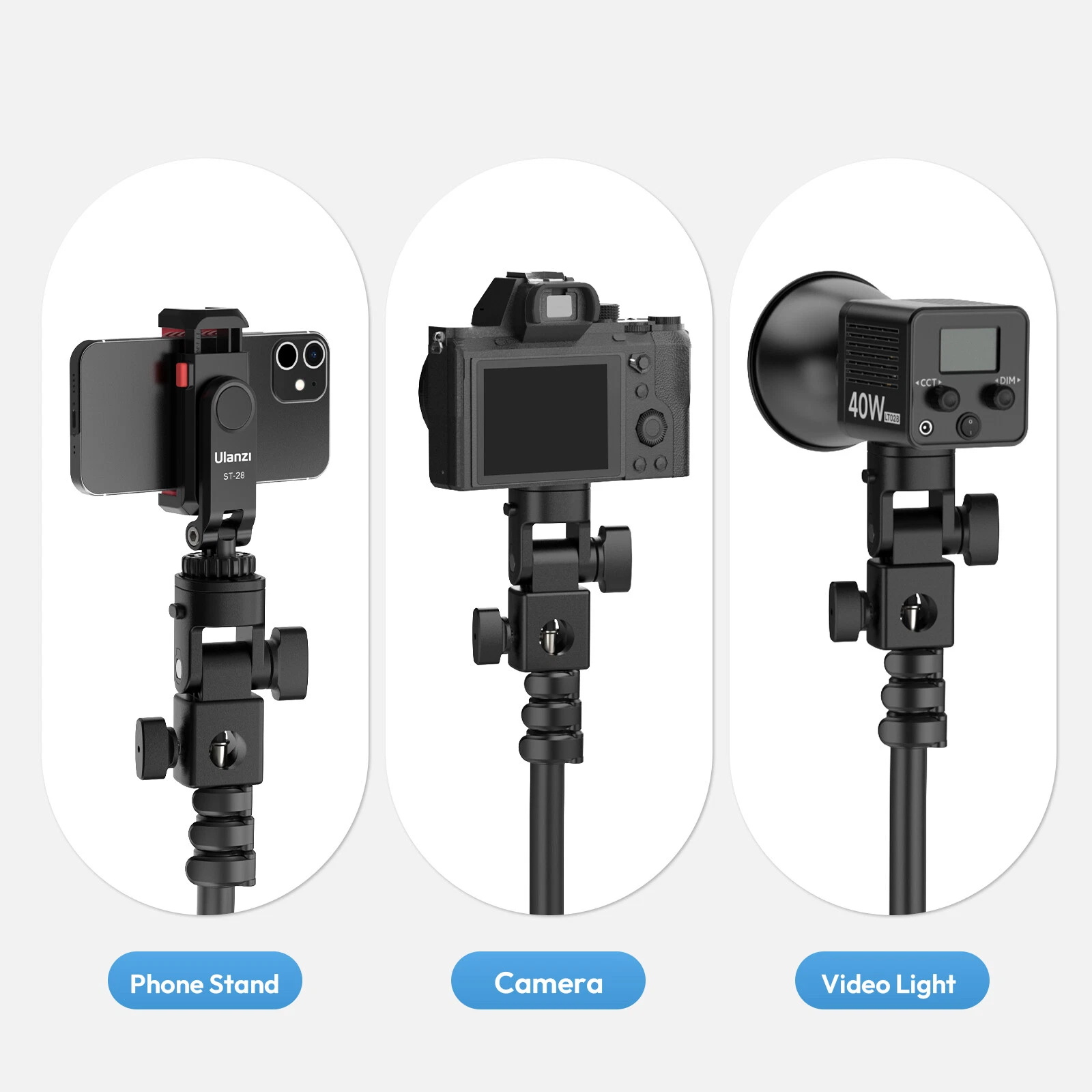 - Сумісність зі стандартними студійними стійками: LEEKAI QR-08 легко встановлюється на більшість стандартних light stand та штативів, а фіксувальний гвинт забезпечує надійне утримання обладнання.