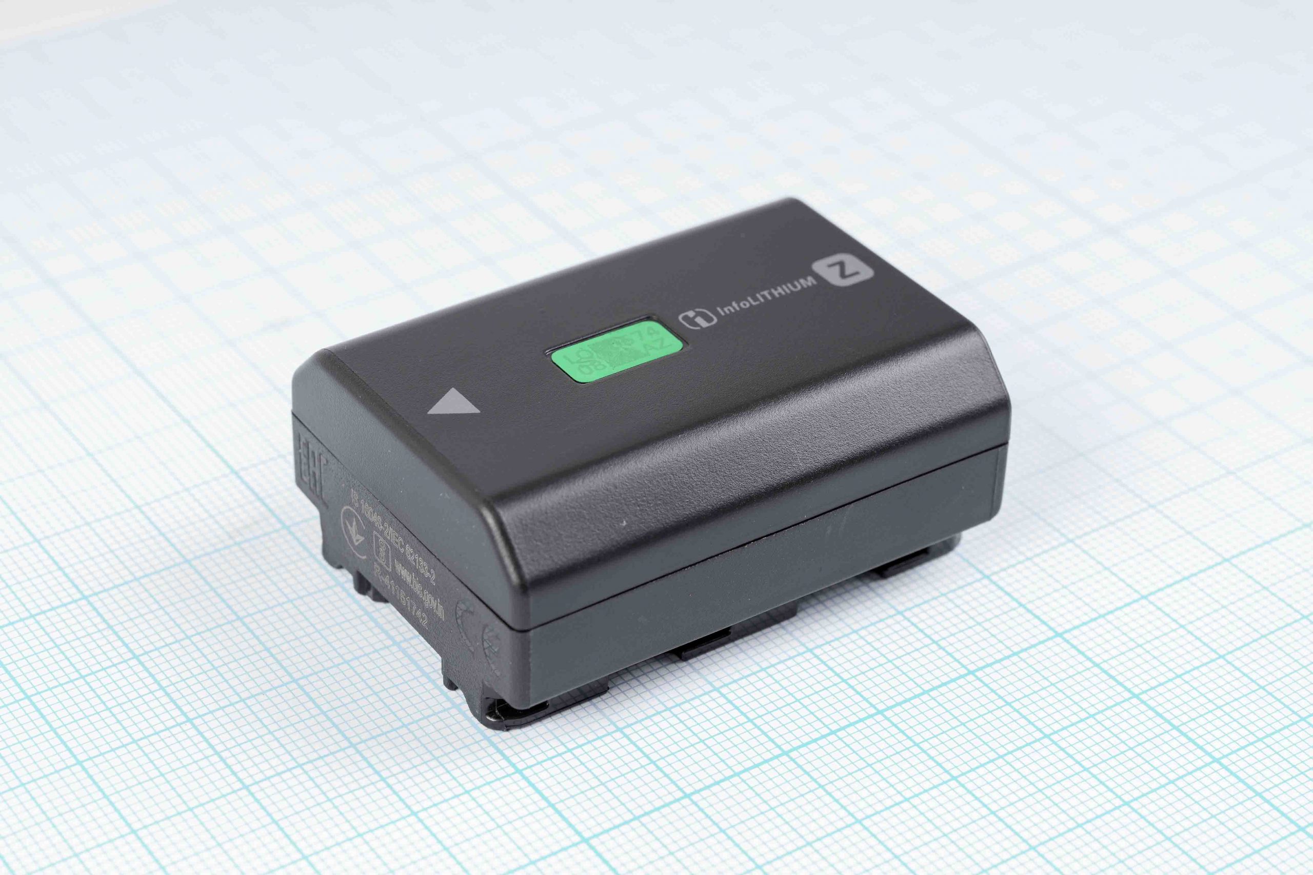 Вбудований чіп забезпечує точне відображення залишку заряду на екрані камери. Літій-іонна батарея не потребує повного розряду перед зарядкою та зберігає ємність навіть після тривалого інтенсивного використання.