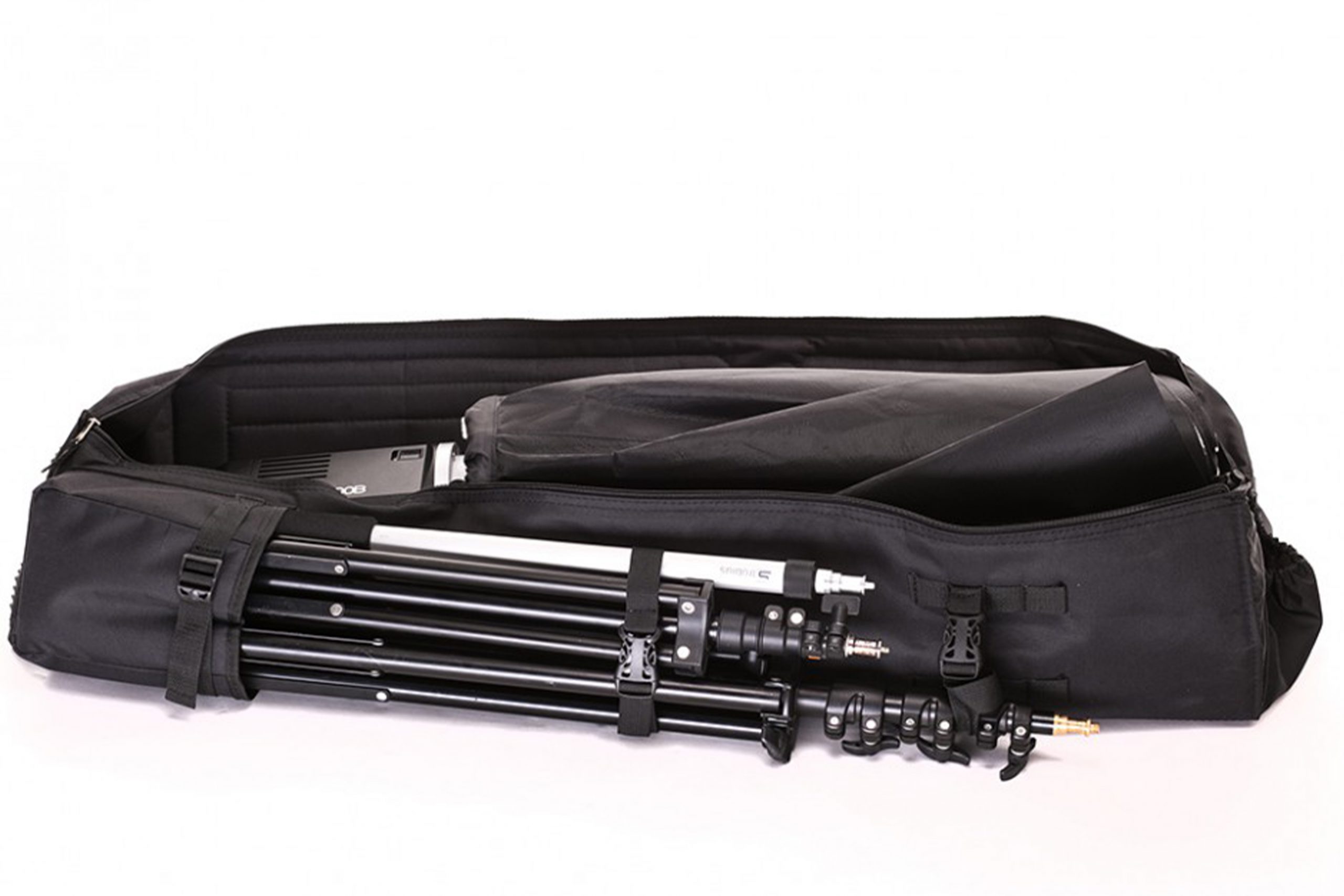 Вона дозволяє переносити одну велику стійку, компактну додаткову стійку та аксесуари на кшталт подовжувача чи монопода. Завдяки регульованим ременям можна надійно зафіксувати стійки будь-якого розміру.