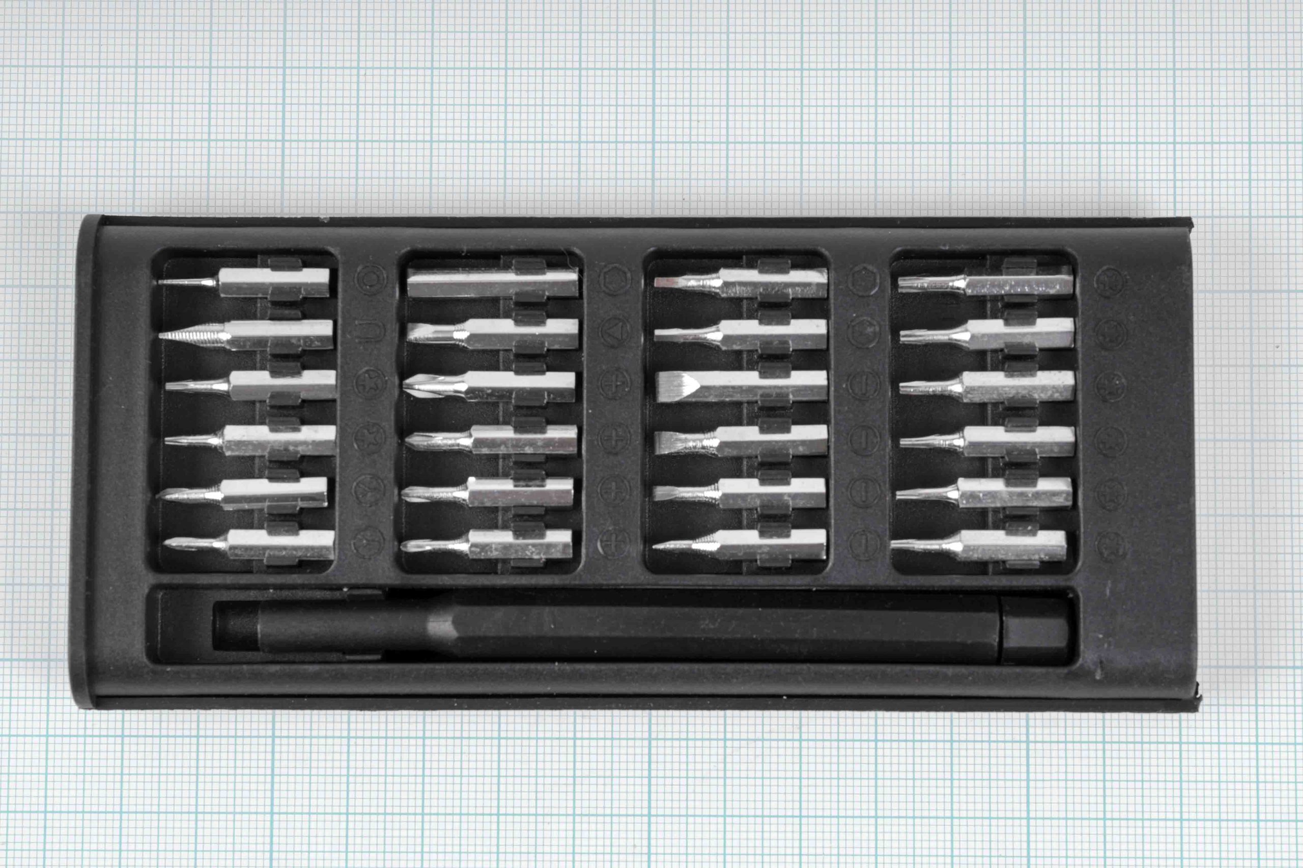 • 24 змінні біти: У наборі представлені 24 різні біти, виготовлені з високоякісної сталі S2. Вони відрізняються підвищеною міцністю та довговічністю. Біти мають різні форми та розміри, що дозволяє працювати з широким спектром кріплень: